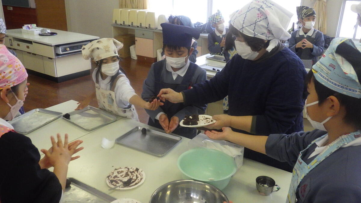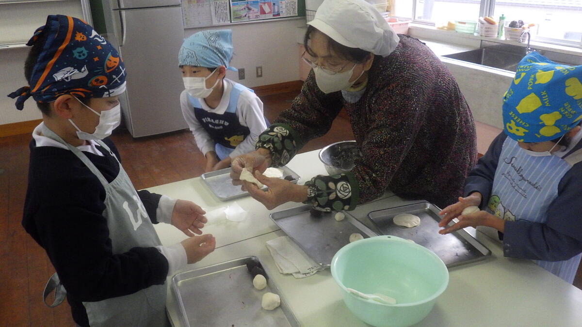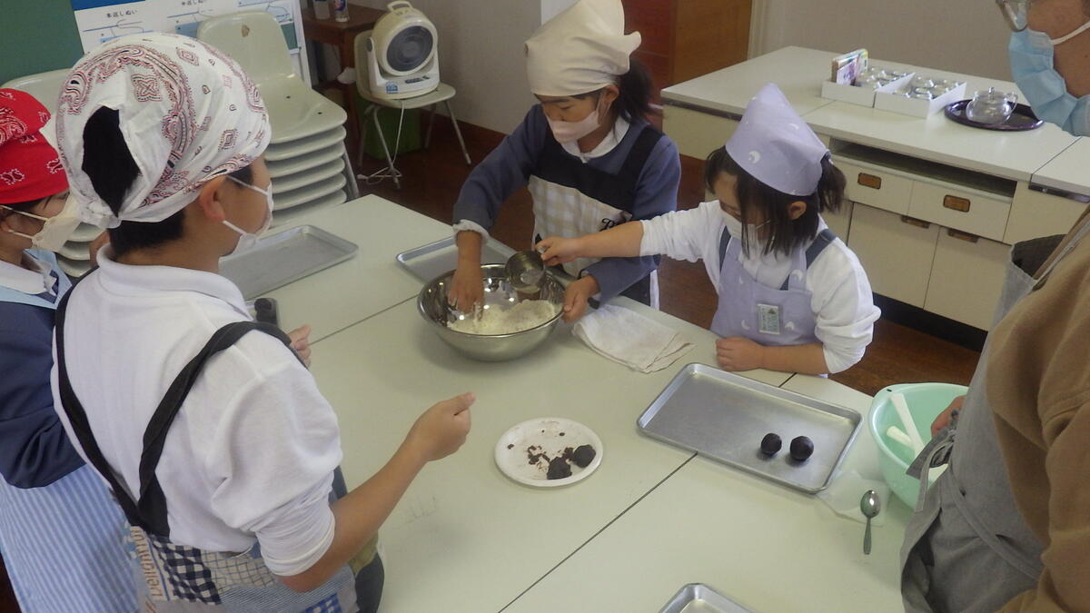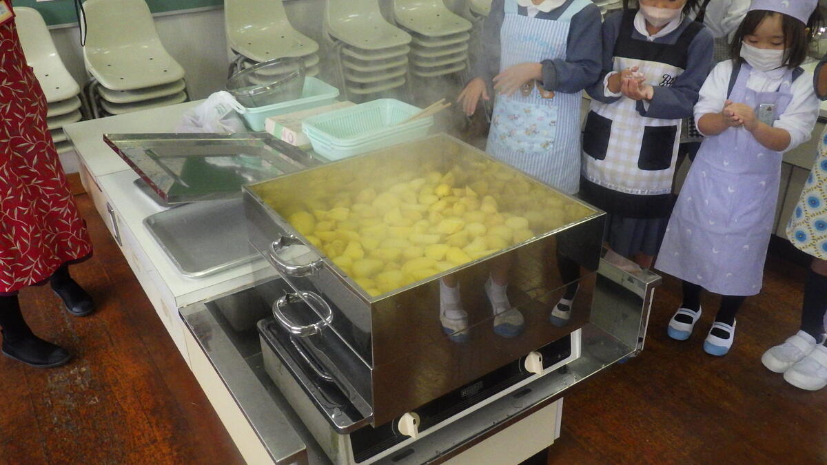 2・3時間目に、1~3年生が、いも団子作りに取り組みました。