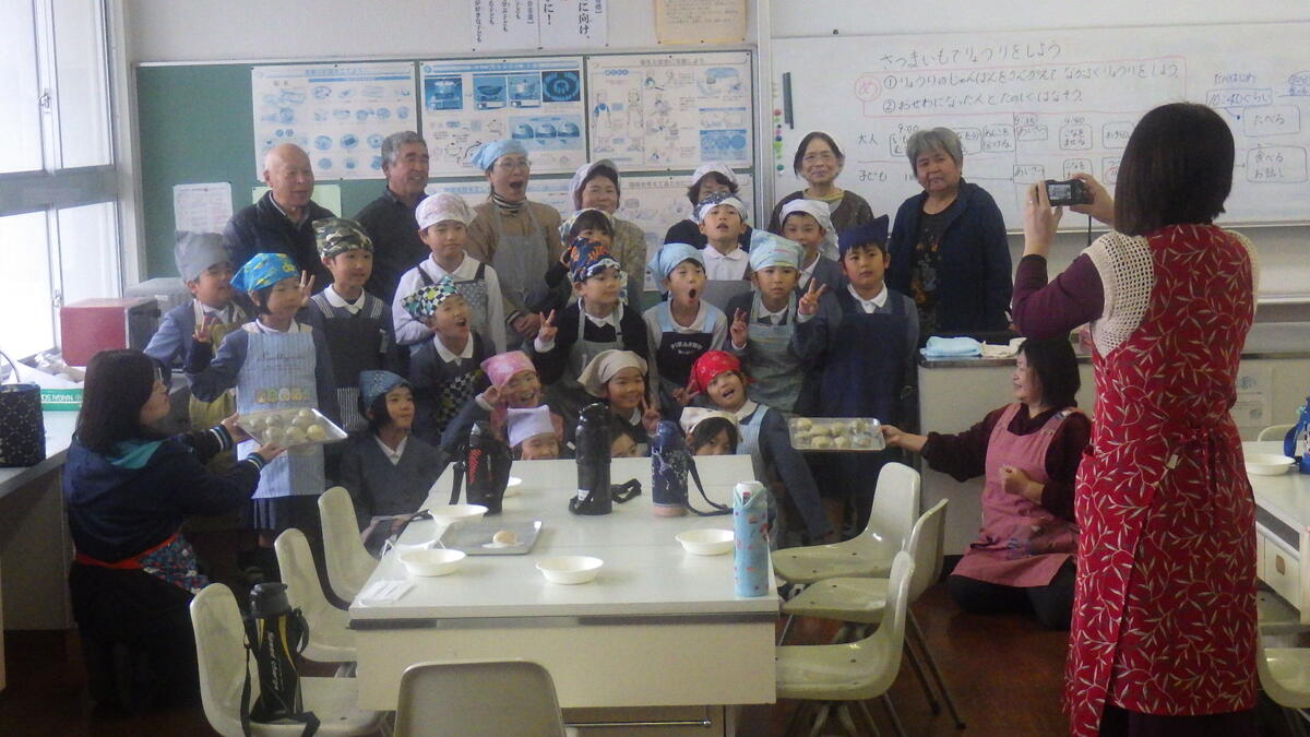 今日は、いつも子供たちがお世話になっている地域の方々をゲストとしてお招きし、いも団子を一緒に作ってくださった地域ボランティアの方々と一緒に、できたてほやほやの団子をみんなでいただきました。地域の方々の優しい笑顔を見て、子供たちも嬉しそうでした。団子の味がより一層おいしく感じたのではないかと思います。参加いただいた地域の皆様、今日は本当にありがとうございました。これからもどうぞよろしくお願いします(*^_^*)