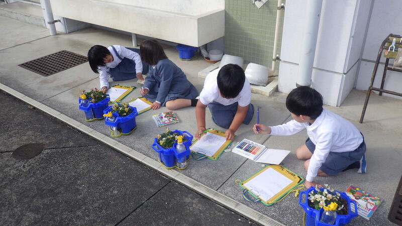 「ビオラの匂いがすてき」「ビオラの花は、親指ぐらいの大きさ」など、子供たちは、観察ポイントを意識しながら詳しく文章を書いていました。今年の冬を元気に乗り越えて、大きく、きれいな花を咲かせ続けてくれることを願っています。