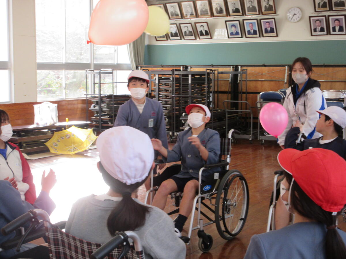 交流会では、あかね学級の生徒が自分たちで企画して小学生を楽しませてくれました。ありがとうございました。わくわく学級の2人はとても楽しかったようで、交流会が終わって小学校に帰ってくるなり「楽しかったぁ~!」と嬉しそうに感想を伝えてくれました。