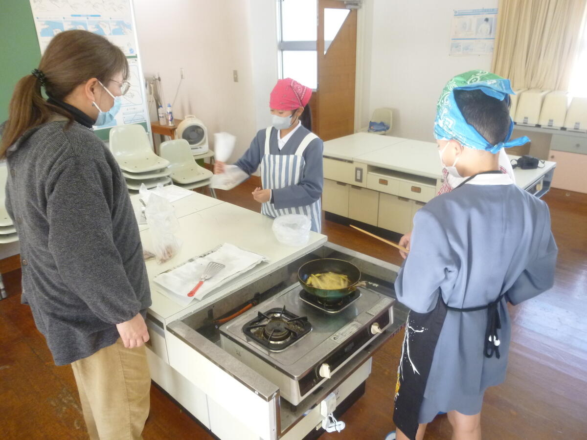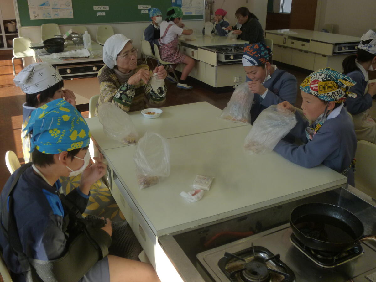 次に、3時間目には、4年生がMTTの方々と一緒にいもけんぴ作りに挑戦しました。