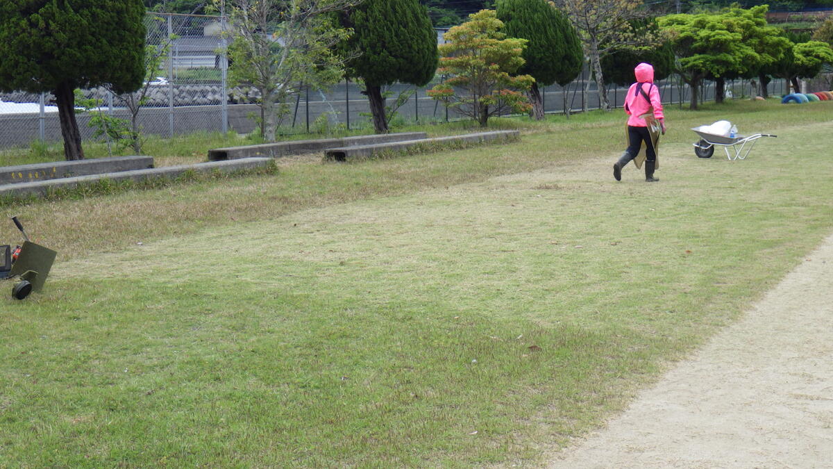 本来ならば、今日の2時間目に全児童でいも掘りを行う予定でしたが、あいにくの雨で明日に延期となったため、今日の午後に撤去作業を行った次第です。