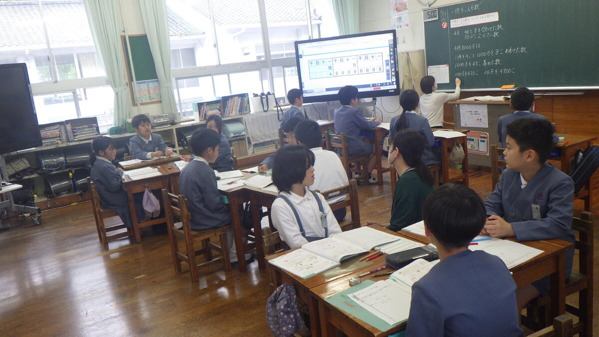 2時間目の3・4年教室の様子です。昨年度、2・3年が複式学級でしたが、本年度は一つずつ学年が上がって3・4年が複式学級となりました。