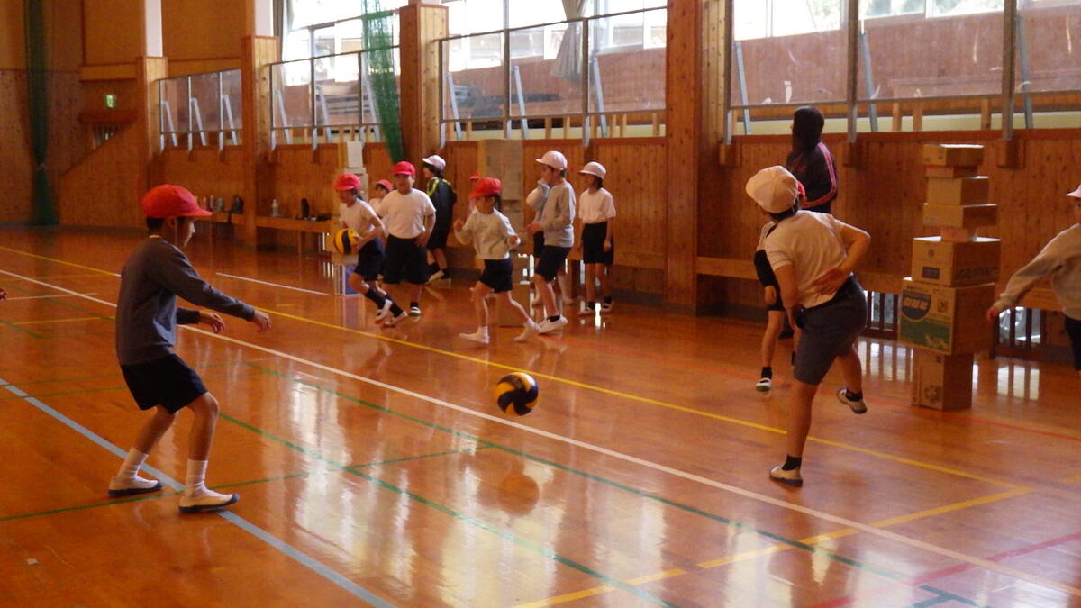 2年生は、1年生と一緒に体育館で元気に体育の学習を頑張っていました (^o^)