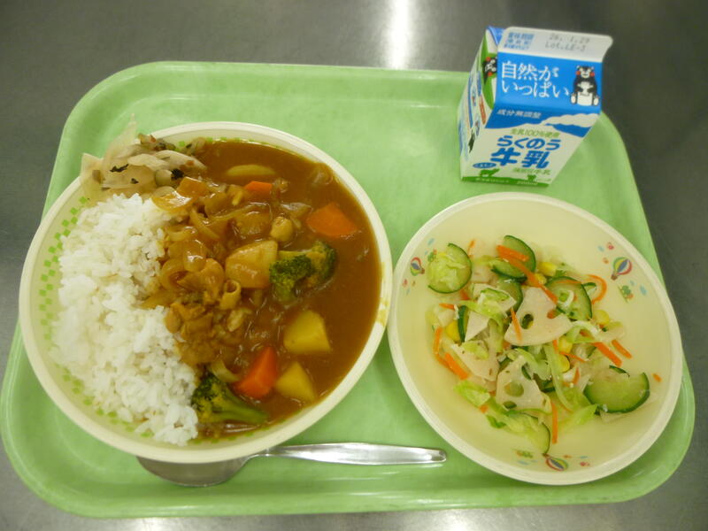 ☆チキンカレー ☆牛乳 ☆れんこんサラダ ☆福神漬け
