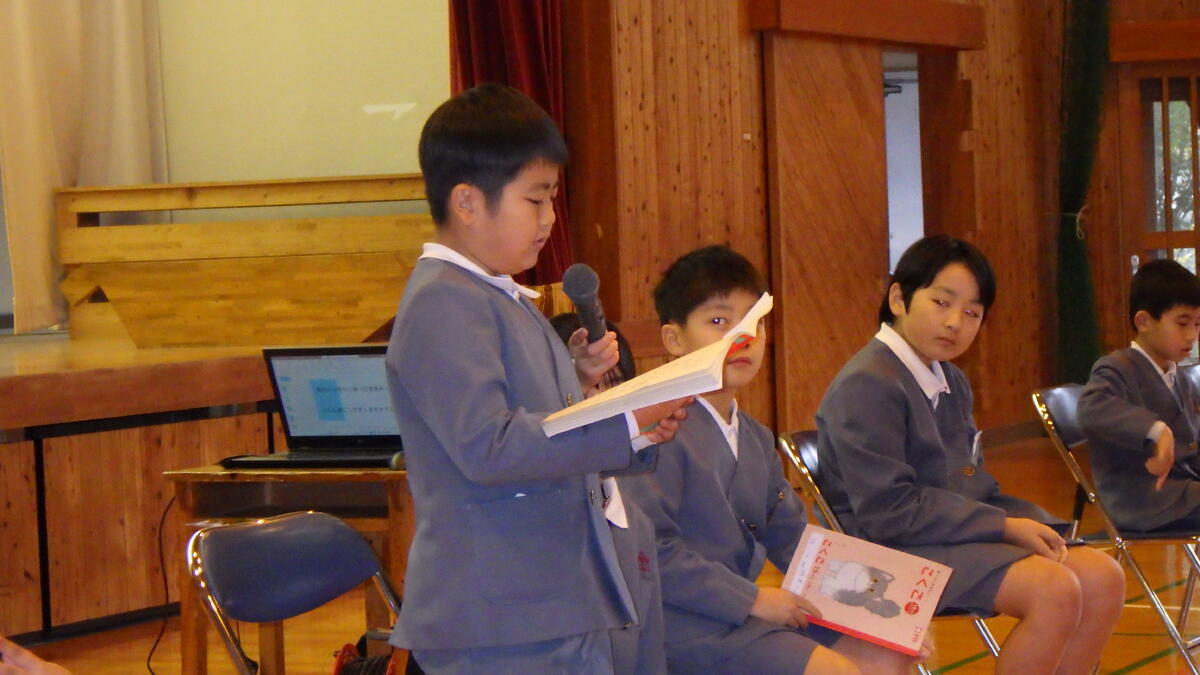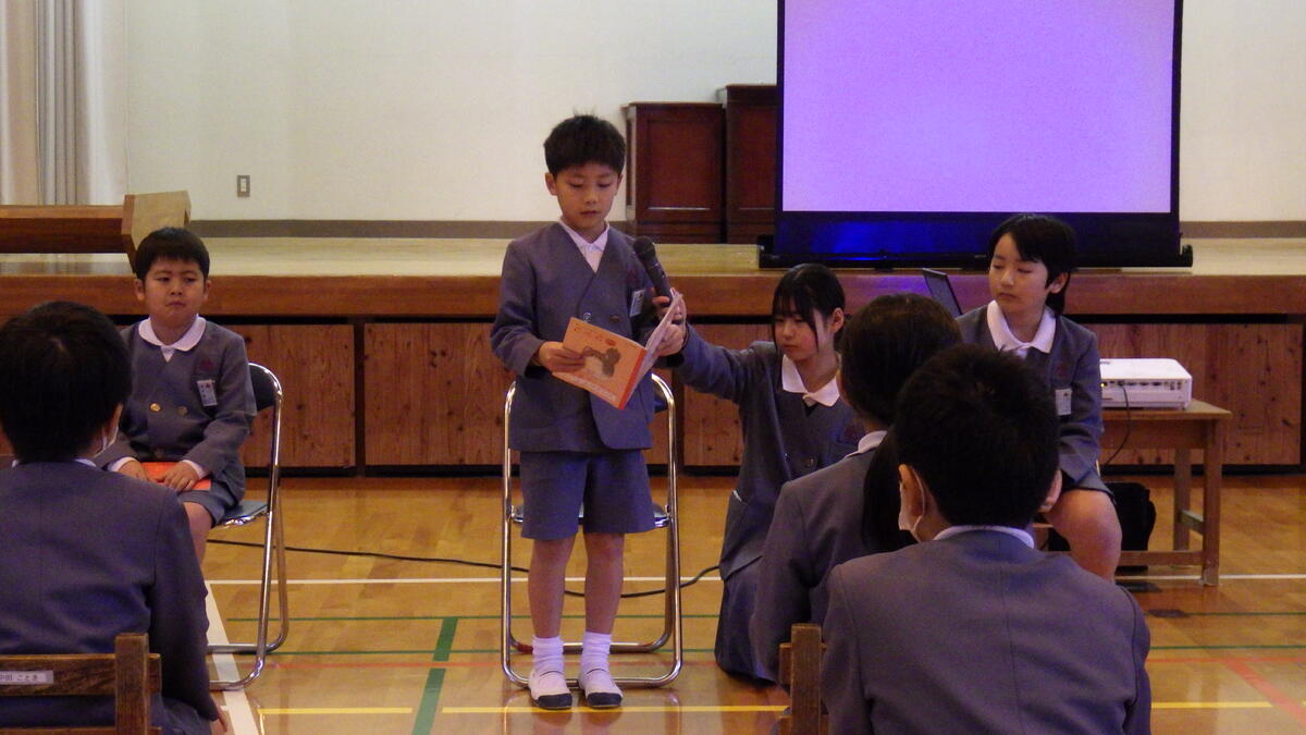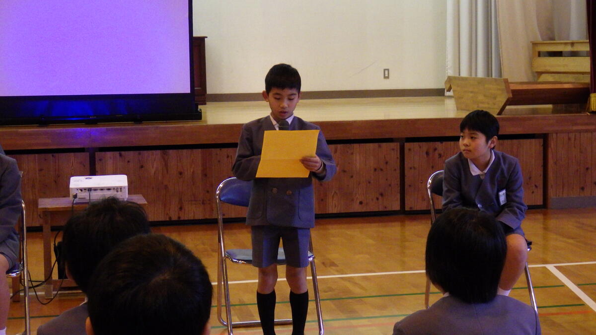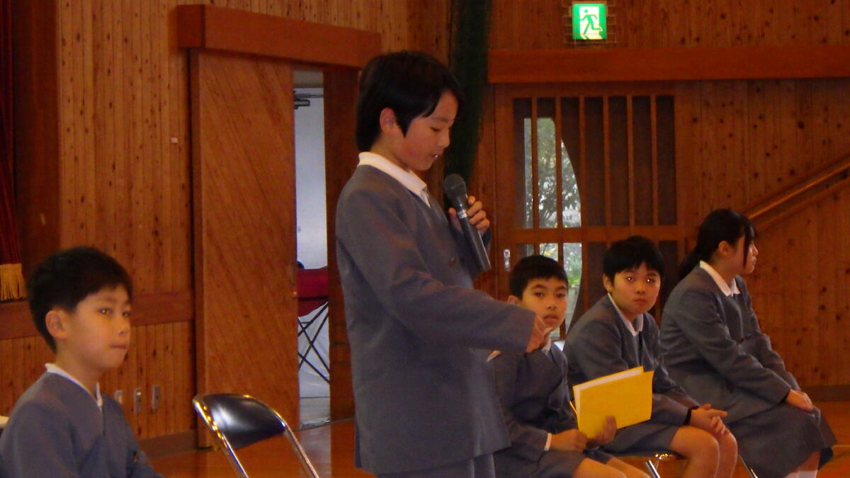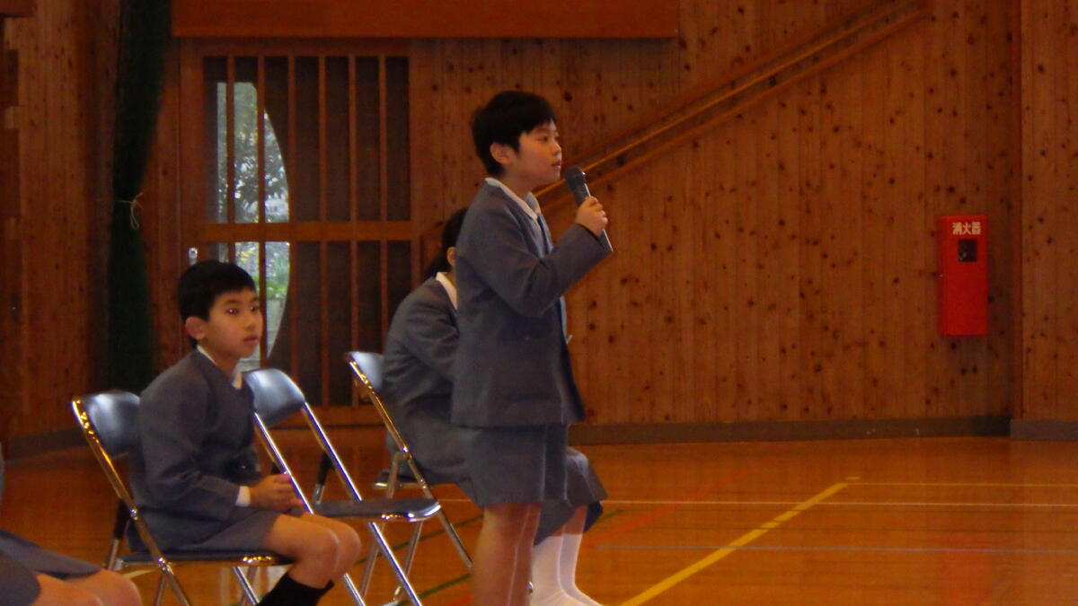 式のはじめには、各学年の代表児童が2学期の反省と冬休みに目標等について発表してくれました。