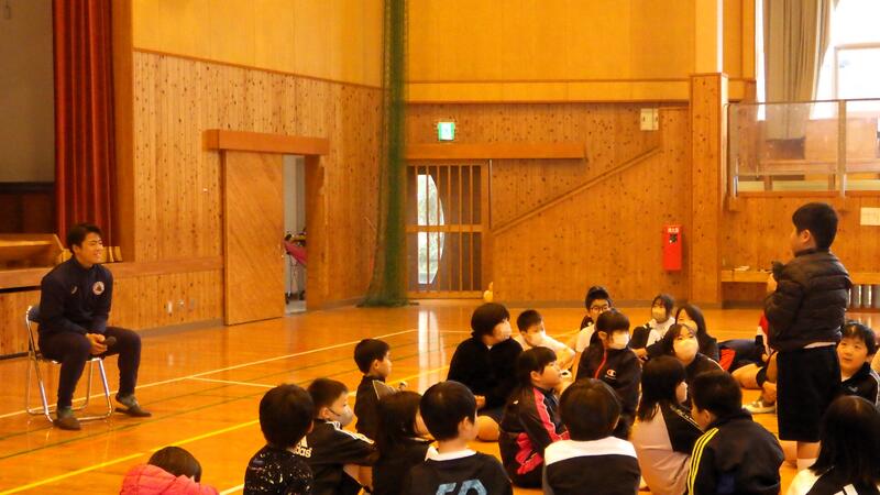 長崎総合科学大学付属高校サッカー部キーパーとして、昨年12月の全国高等学校サッカー選手権大会に出場された山口 海翔さん。姫戸町出身。大津高校の碇 明日麻さんと同級生。忙しい合間をぬって子ども達に会いに来てくれました。サッカーを始めたきっかけ、サッカーを通して学んだこと、苦労したこと、将来の夢など、たくさん話をしてくれました。