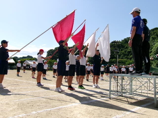 今年の小学校の大会スローガンは「最後まで全力!! ~感動のある体育大会にしよう~」、中学校の大会テーマは「百花繚乱~果敢に行動し 一人一人の個性を輝かせよう~」でした。子供たちは、このスローガン・テーマの下、体育大会に向けて、全力で練習に取り組んできました。そして、当日も暑さに負けず、一生懸命頑張る姿をたくさん見せてくれました。そのおかげで、見ている方々に感動を与える素晴らしい運動会となりました。子供たちの頑張りに心から拍手をおくりたいと思います。