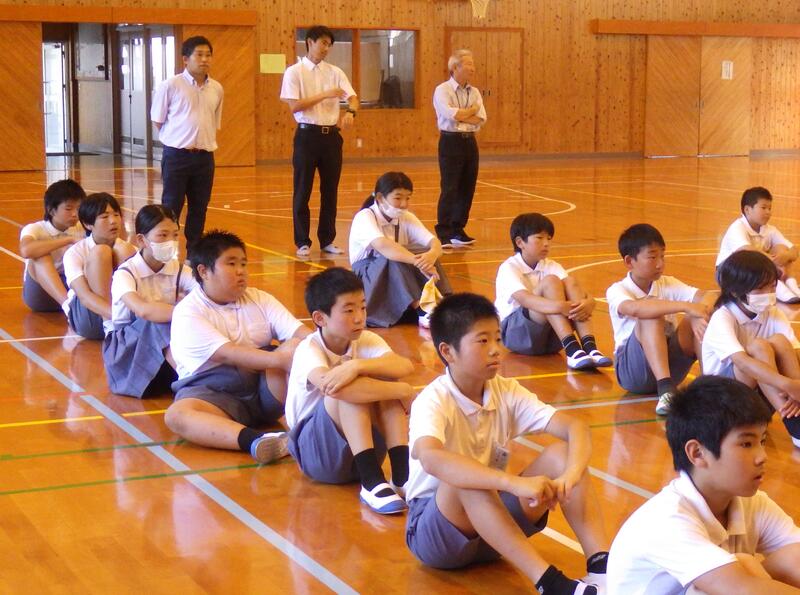 ③人が感動するのは、誰かがひたむきに努力している姿、目標達成に向けて一生懸命頑張っている姿を目にしたとき。だから、何事にも一生懸命取り組んでほしいし、お互いの頑張りを認め合って、感動を共有してほしい。子供たちは、真剣な表情で、目と耳と心でしっかりと話を聞いていました。