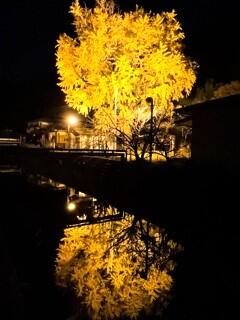 昨夜はちょうどお月様が大銀杏の枝にかかっていて、1時間ほど、ぼんやりと眺めていました。散歩の途中に見上げに来られる方、本渡から大銀杏に逢いに来たという二人組、「今年もありがとう」と大木に声をかけていらっしゃる方、長い時間ずっとカメラを構えて撮影されている方など、それぞれが、それぞれの心を癒やされに大銀杏の袂に集います。