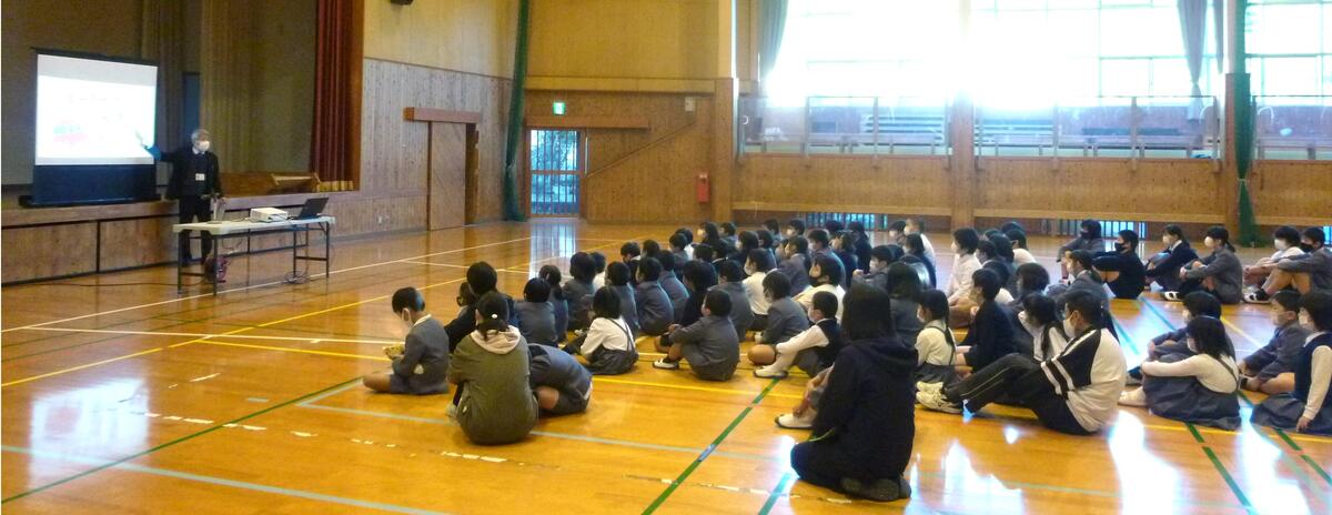 この4つが「自分を大切にする」基本であり、日常の生活の中で「自分で」意識的に行ってほしいこと。その手助けをするのが家族、先生、地域、友だちであること。そして「自分」を「友だち」に置き換え、日頃の友だちの表情や行動に気を配り、「今日は調子が悪そうだな」「様子がどこか変だ」「なんか辛そう」と、友だちの気持ちを推し量ることの大切さを話しました。