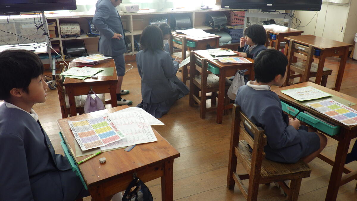 3時間目、2年は算数の授業があっていました。3年は別教室で教頭先生による理科の授業でした。