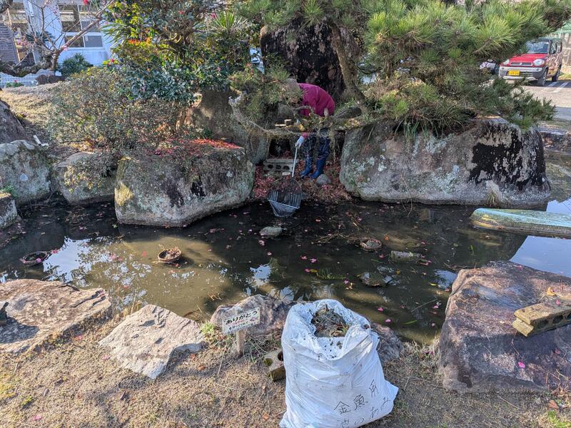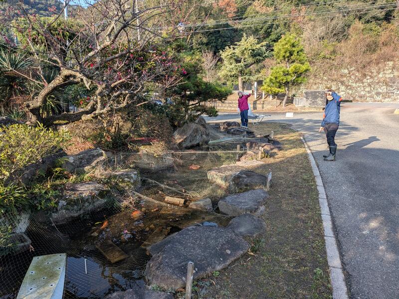 池いっぱいにネットを張り巡らせるのも大変でしたが、完成が近づくにつれて・・・用務員の先生曰く、「いい感じになってきました!」 ぜひ、学校に立ち寄られた際には、日本庭園池に泳いでいる金魚を眺めていただけると幸いです。
