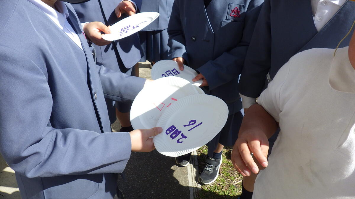 手に何か持っています。紙皿に「2日目 16」と書いてあるようですね。