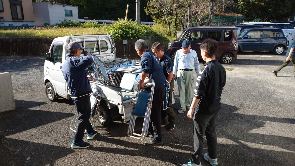 11月1日の記念式典では、たくさんの方々の参加をいただきたいと思っているところですが、式場を設営するに当たり、本校にある椅子の数だけでは不足するため、中学校と姫戸体育館からそれぞれ100脚ずつパイプ椅子を借りことにしました。