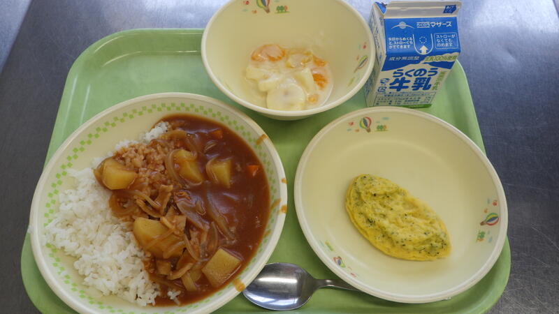 ☆麦ご飯 ☆牛乳 ☆鉄人カレー ☆豆腐のミンチカツ ☆フルーツヨーグルト