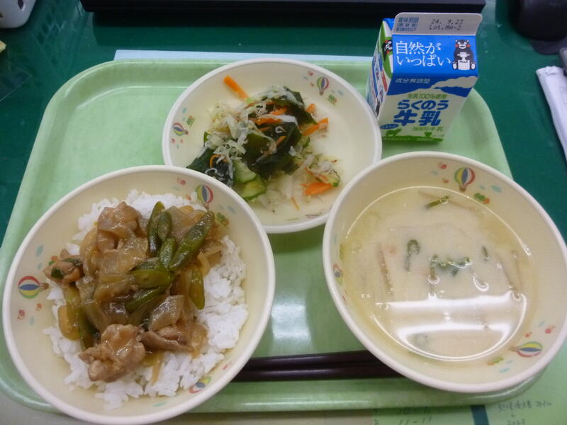 今月のふるさとくまさんデーは「熊本市」です。熊本市はナスの生産量が県内一位で、今まさに旬を迎えています。また、御飯の友は熊本市の薬剤師さんが100年以上前に、子ども達のカルシウム摂取不足を補うために考えられました。「初めて食べました」という児童もおり、丈夫な歯や骨を作るためにカルシウムをとろうと呼びかけました。