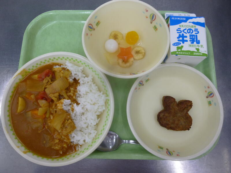☆十五夜カレーライス ☆牛乳 ☆うさぎバーグ ☆お月見デザート