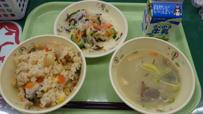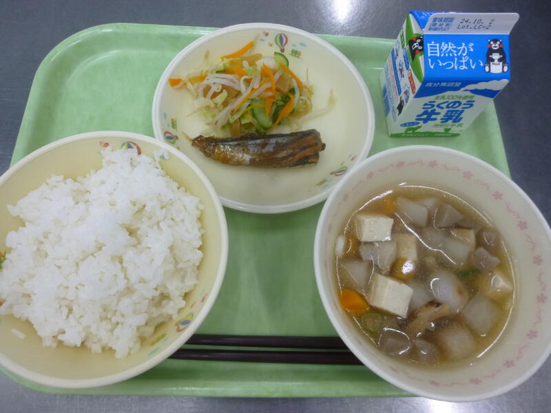 「今日はご飯がすすむメニューですね!」と朝から声をかけてくれたのは、いつもモリモリ食べてくれる児童でした。豚キムチ炒めはピリッとした辛さがありますが、ご飯と一緒に食べるとほどよくなりました。まさに「食欲の秋」をむかえた姫戸小学校です。