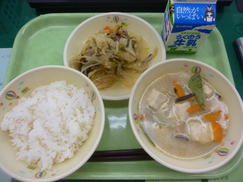 ☆教良木ご飯 ☆牛乳 ☆豆腐の中華煮 ☆豚キムチいため