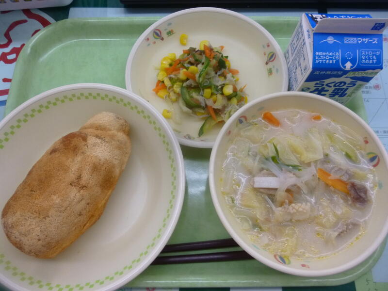 ☆ホットドッグ ☆牛乳 ☆豆乳チャウダー ☆ビーンズツナサラダ