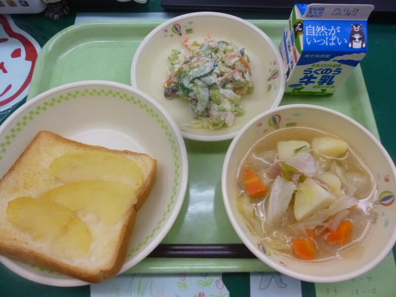 ☆りんごトースト ☆牛乳 ☆ポトフ ☆ビーンズツナサラダ