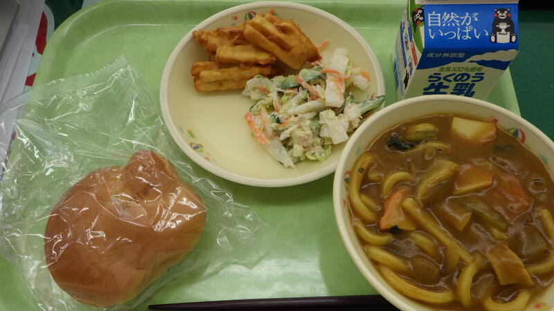 ☆ひのくにパン ☆牛乳 ☆カレーうどん ☆大根サラダ ☆がねあげ