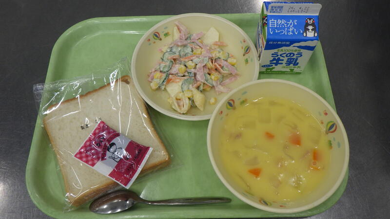 ☆食パン ☆牛乳 ☆コーンスープ ☆マカロニサラダ ☆マーシャルビーンズ