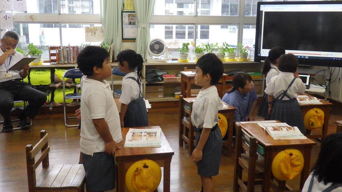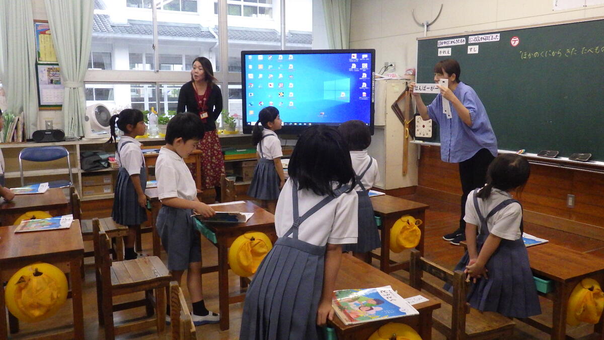 教科は道徳科。国際理解・国際親善がテーマの授業でした。1年生にとっては難しいのでは?という考え方もありますが、その点も考慮し、1年生の子供たちがしっかりと意欲を持って自分なりに考えることができるような工夫のある授業でした。