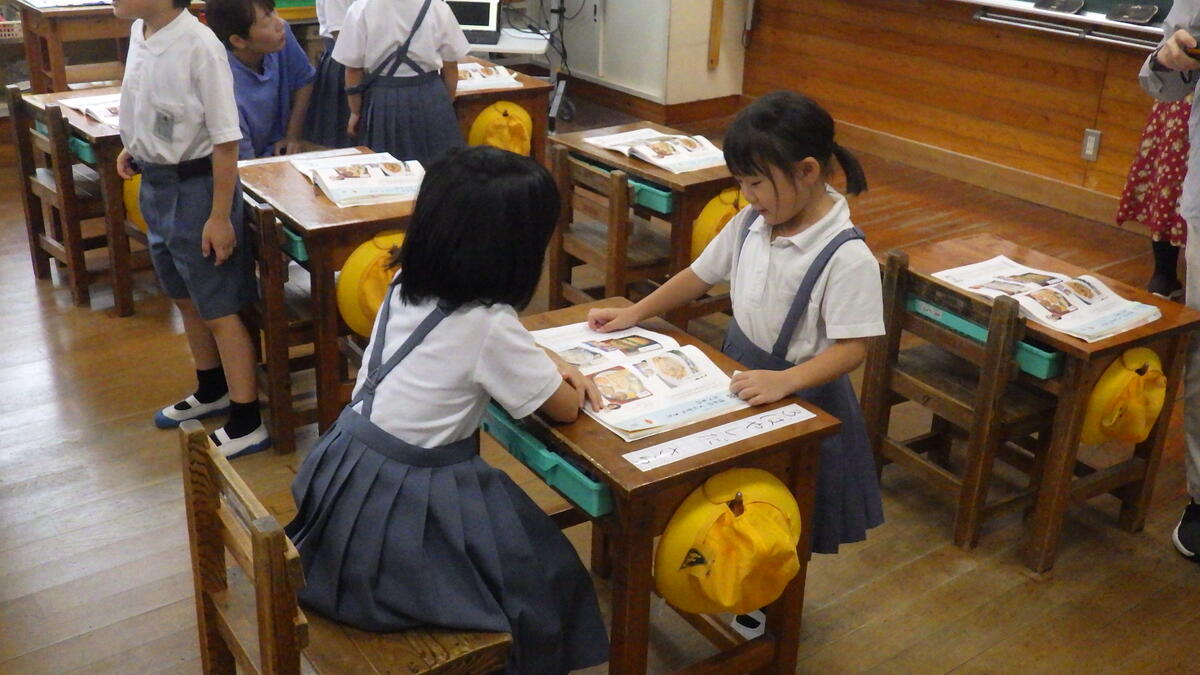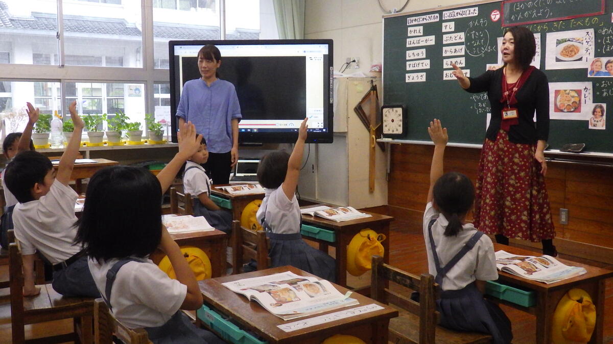 担任の山下先生と栄養教諭の花田先生と一緒に学習しました。
