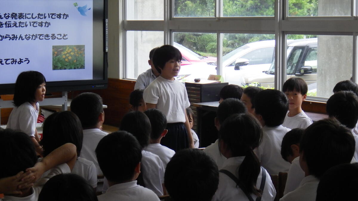 初めての練習でしたので、まだまだ声のボリュームや間のとり方などにおいて課題がありますが、練習を重ねていくことで、子供たち自身が達成感を味わえるような発表にしてきたいと考えています。
