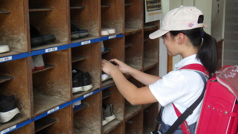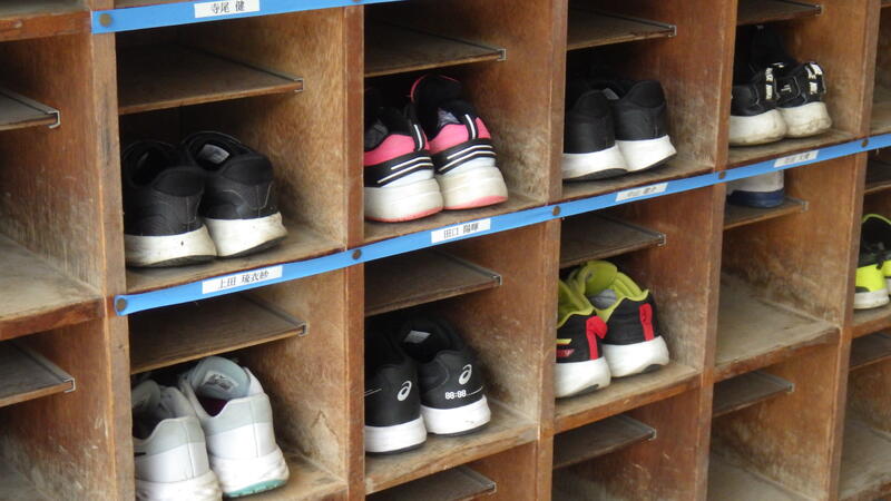 登校すると、まず、下駄箱にある上ぐつを取り出し、手にしたくつを下駄箱にきれいに入れています。先日、ある来校者の方が「小学生は、下駄箱のくつがきれいに並んでいますね。中学生は、いつも自転車がきれいに並んでいます。」と話されていたのをつい思い出しました。