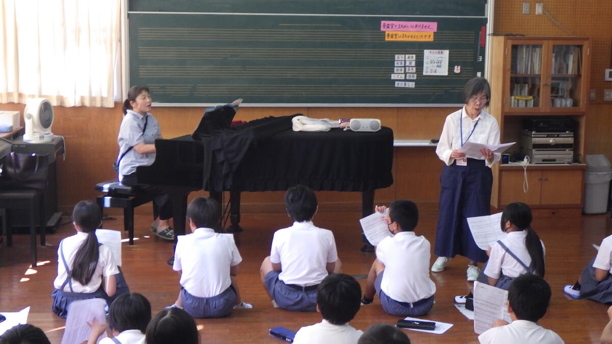 ただ、本年度は、姫戸中の木下先生が音楽専科として音楽の授業をしていただいていますので、音楽の授業の中に永森先生にも入っていただき、タッグを組んで指導していただくことになっています。