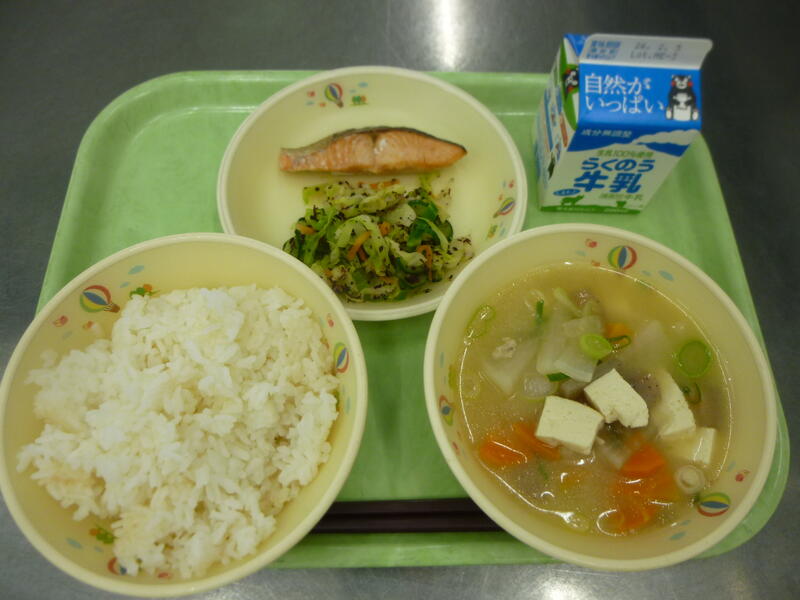☆ご飯 ☆牛乳 ☆豚汁 ☆鮭しおやき ☆ゆかりあえ
