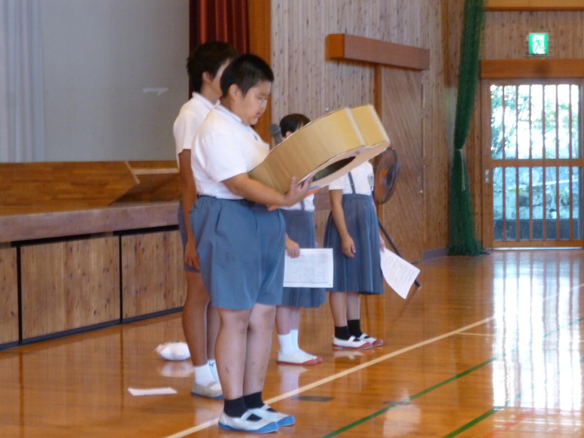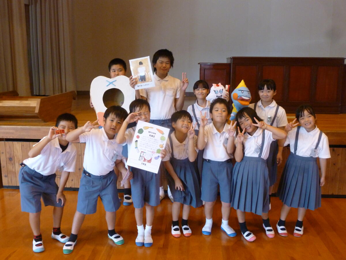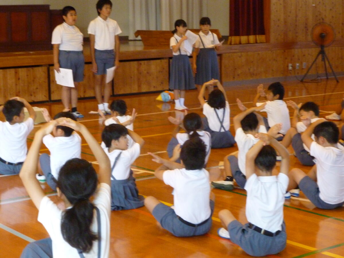 給食委員の「これからもよくかんで食べ、丈夫な歯を育てましょう!」というまとめの言葉で今日の健康集会は終わりました。