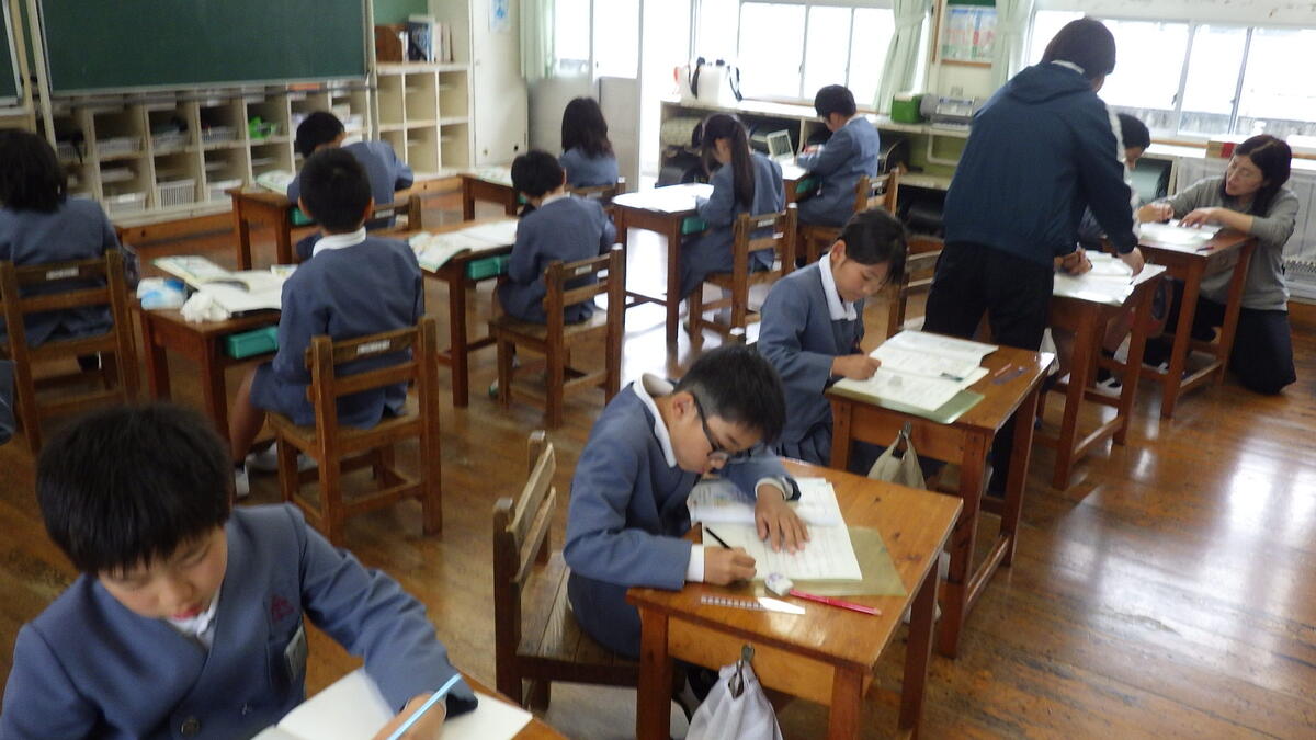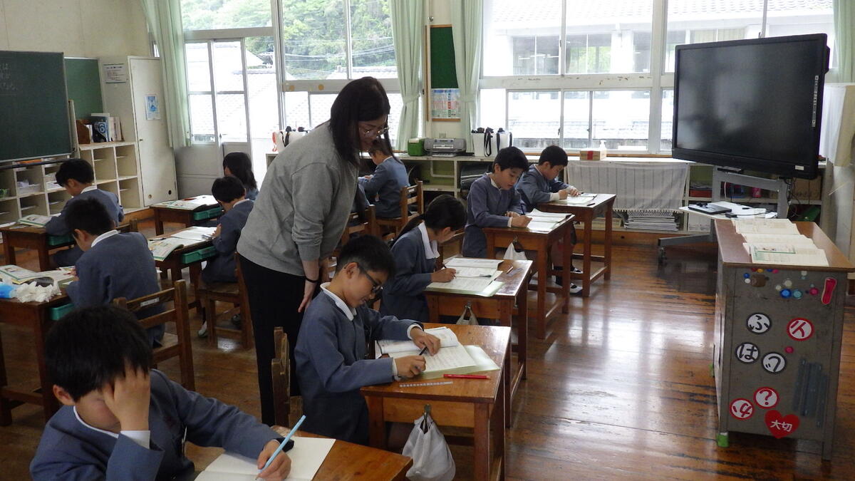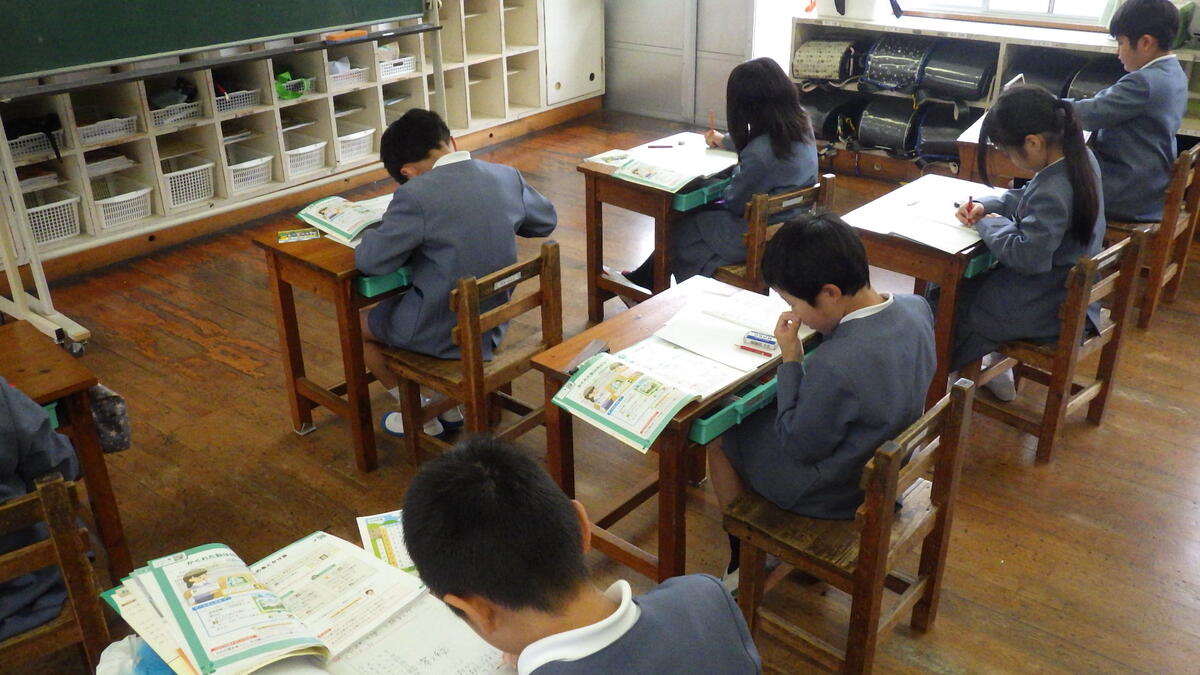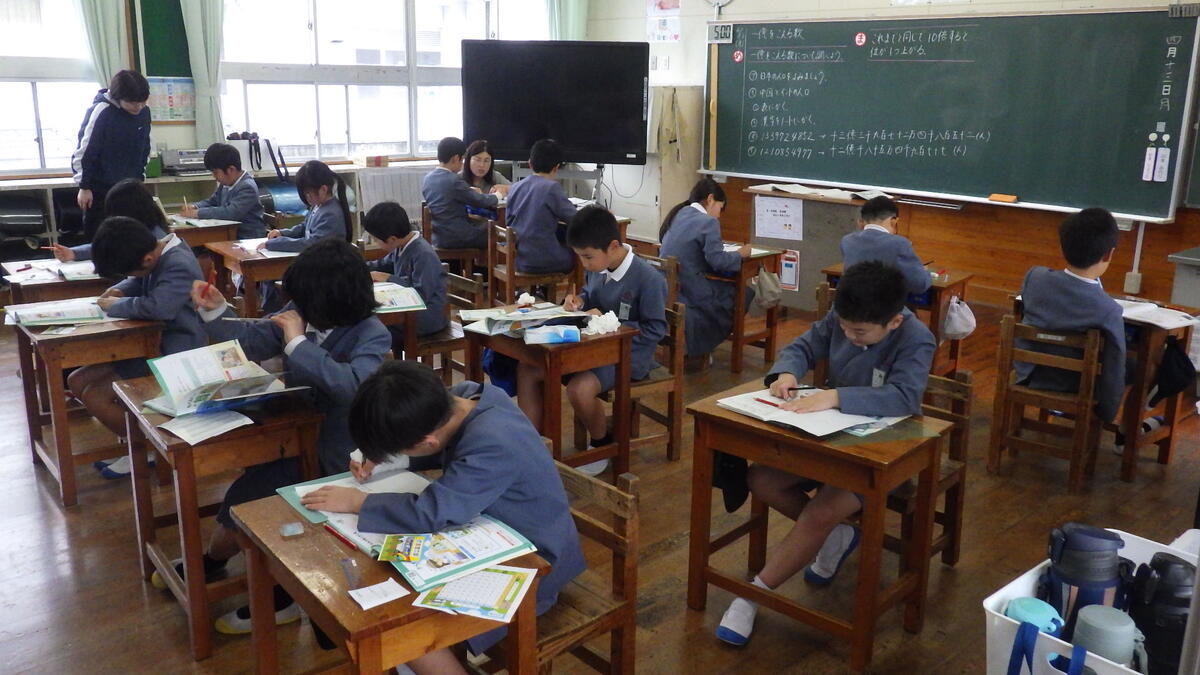 2時間目の3・4年教室の様子です。昨年度、2・3年が複式学級でしたが、本年度は一つずつ学年が上がって3・4年が複式学級となりました。
