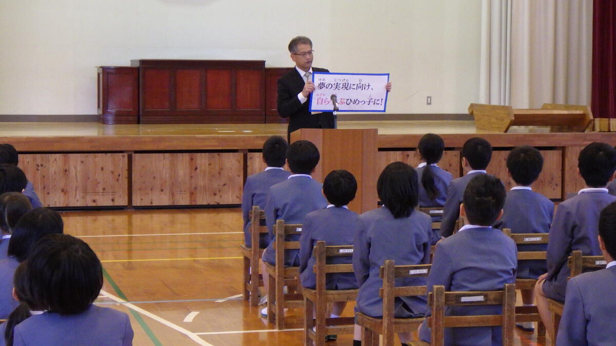 です。この目標を達成できるよう、子供たちには、これからの1年間、一生懸命頑張っていってほしいと思います。もちろん、職員も子供たちのために全力で教育指導に努めてまいる所存です。保護者の皆様、地域の皆様、本年度も本校教育へのご理解とご協力をよろしくお願いします。