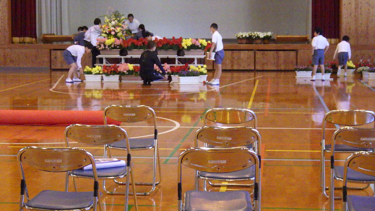 午後からは、3~6年生と職員で明日の入学式の準備を行いました。