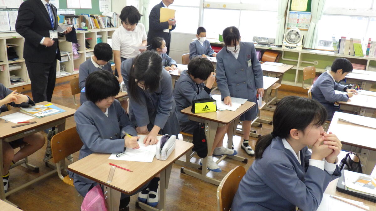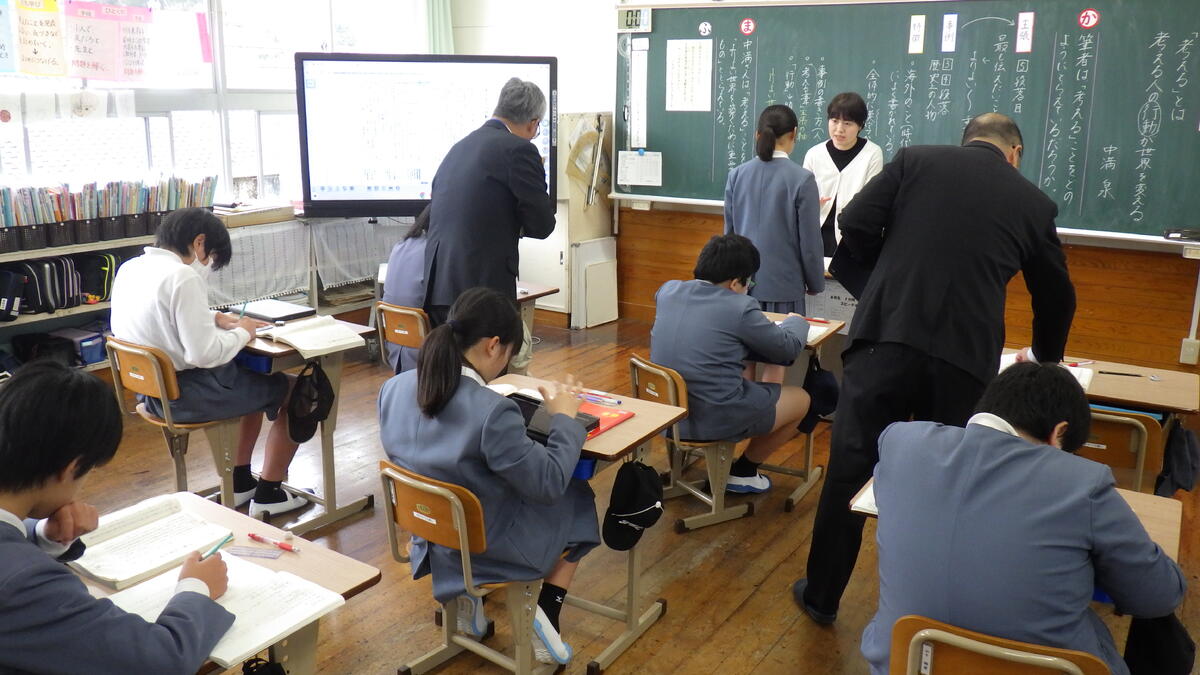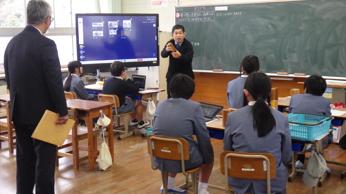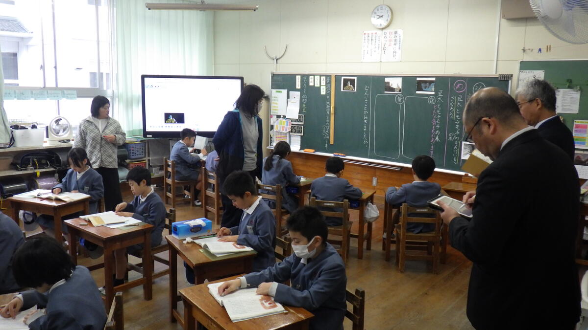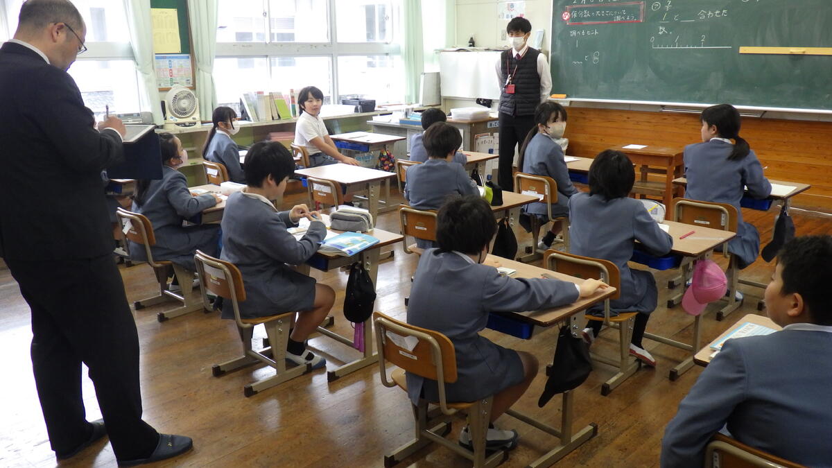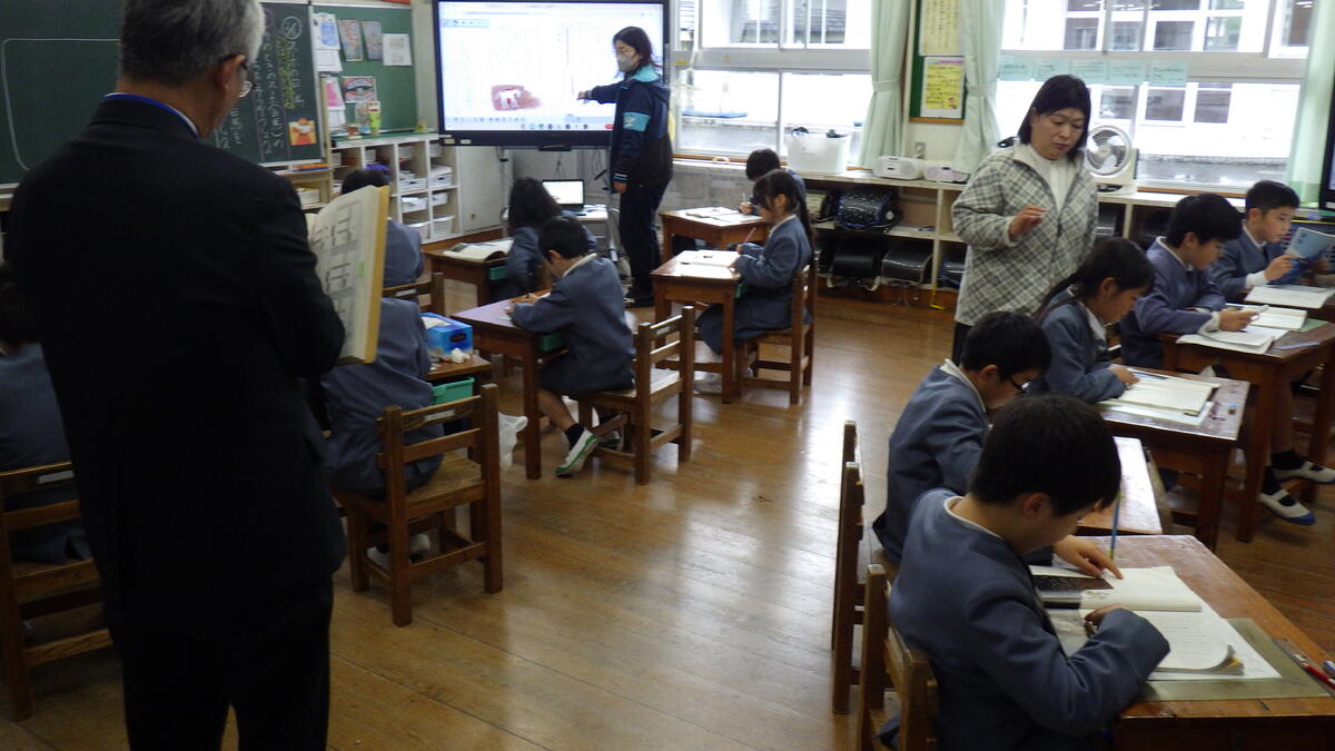 今日は天草教育事務所から授業を参観に来られました。2時間目に各教室を回り、子供たちの学習の様子を参観されました。