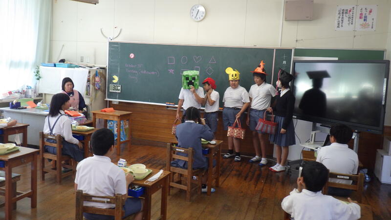 今日はハロウィンということで、給食委員会が各教室で「ハッピーハロウィン」と言いながらまわりハロウィンゼリーを配って回りました。子ども達も「トリックオアトリート!」と答えてくれていました。楽しいハロウィン給食となりました。