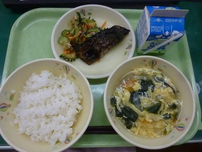 ☆教良木ごはん ☆牛乳 ☆かきたま汁 ☆ぶりの照り焼き ☆ゴーヤのツナあえ