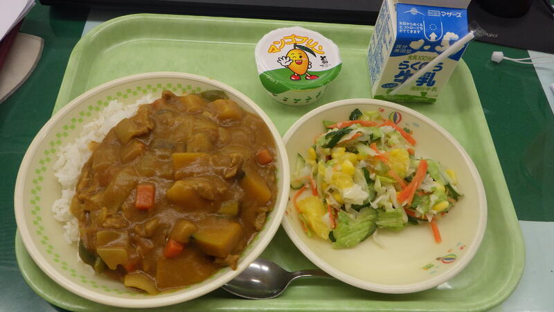 1学期最後の給食は夏野菜たっぷりのカレーです!ナスやかぼちゃ、ピーマンなどの夏野菜がゴロゴロッと入ったカレー。ナスやピーマンなど、そのままだとちょっと苦手だけど、カレーに入っていると食べられるようで、魔法がかかっているようです。今日もしっかり食べてくれた姫っこには、「See You!」といつもの挨拶をかわしました。