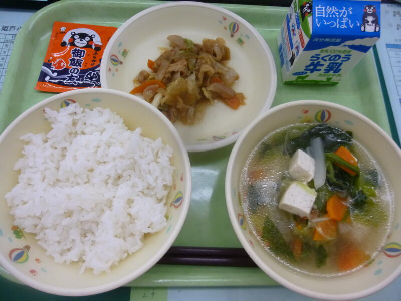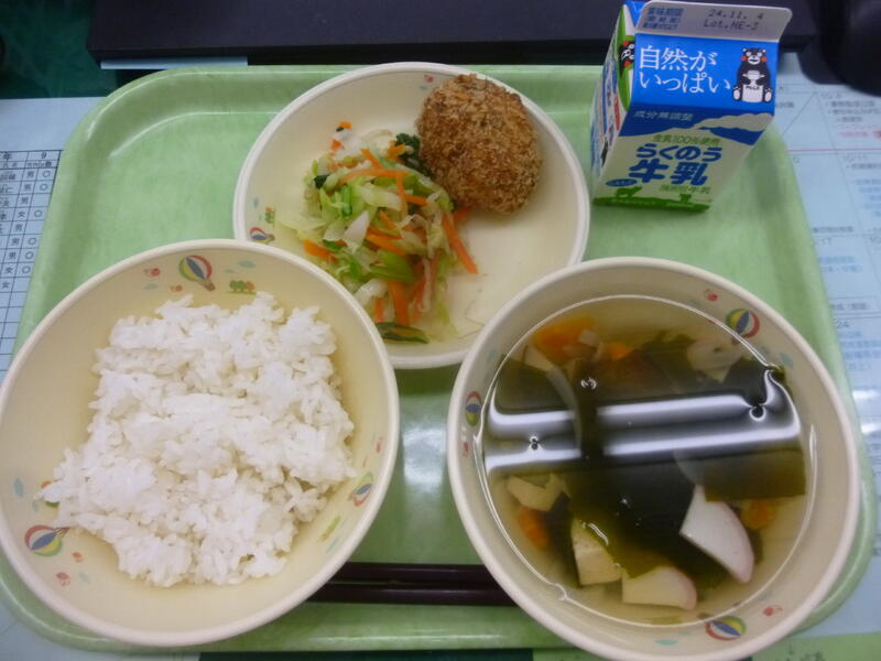 今月のふるさとくまさんデーは「熊本市」です。熊本市はナスの生産量が県内一位で、今まさに旬を迎えています。また、御飯の友は熊本市の薬剤師さんが100年以上前に、子ども達のカルシウム摂取不足を補うために考えられました。「初めて食べました」という児童もおり、丈夫な歯や骨を作るためにカルシウムをとろうと呼びかけました。