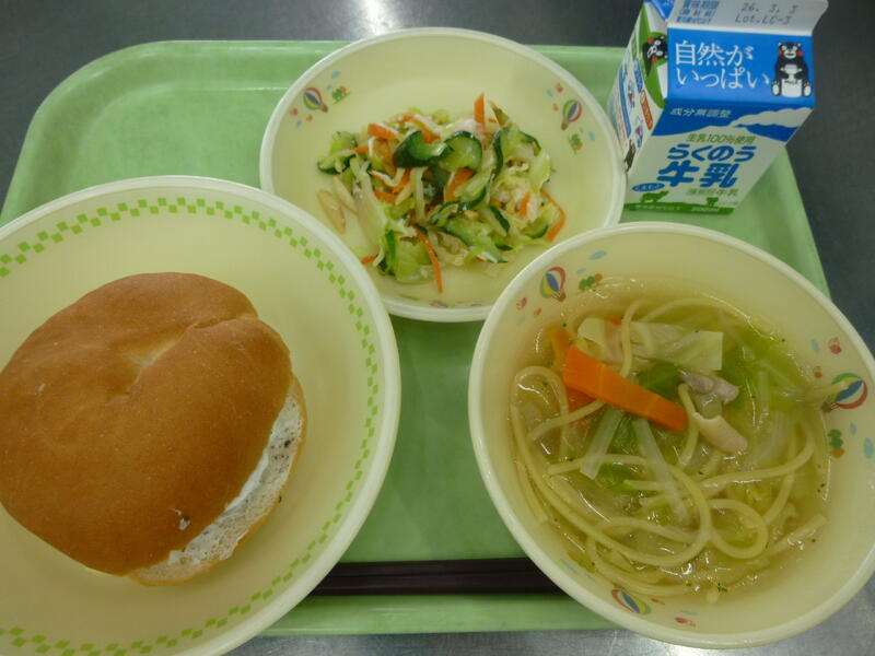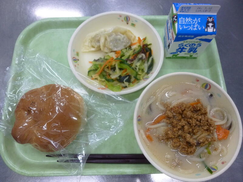☆ひのくにパン ☆牛乳 ☆坦々麺 ☆かいそうサラダ ☆肥後ぎょうざ