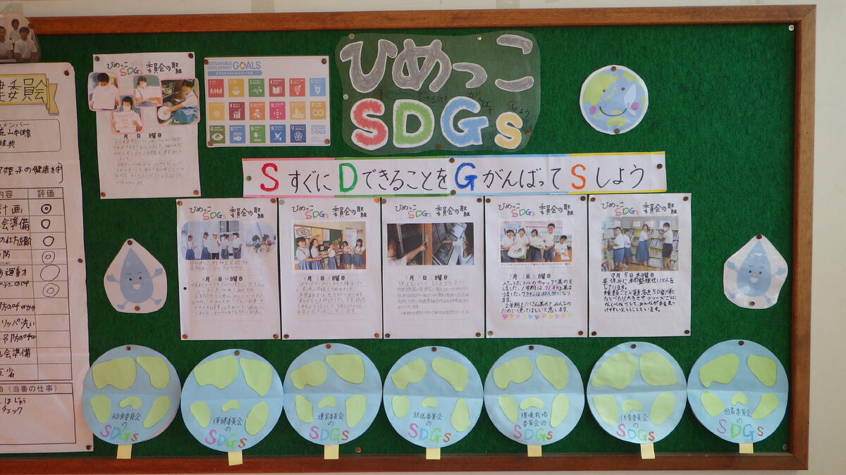 ひめっこSDGsです。SDGsは、Sustainable Development Goals(持続可能な開発目標)の略ですが、姫戸小児童会では、S(すぐに)D(できることを)G(がんばって)s(しよう)を合言葉に取り組んでいます。確かに、自分たちにできることから頑張ることが、持続可能な取組につながりそうですね。