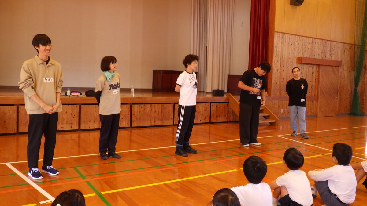 生の舞台芸術に接することを通して、豊かな創造性や情操の涵養に資するとともに豊かな感性を育むことを目的として、『劇団きらら』の皆様に来校いただき実施しました。実際に劇等を鑑賞するのではなく、発声練習や自己紹介ごっこ、早口ことば、即興劇ごっこなどを子供たちが実際に体験する内容で、午前に1~3年生、午後に4~6年生を対象に行われました。子供たちは、最初から最後までとても楽しそうに参加していました。