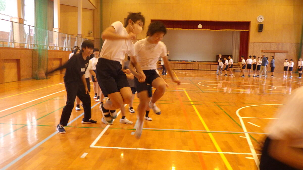 小学校の運動場で開会式を行い、中学生 → 小学生 の順でスタートしました。