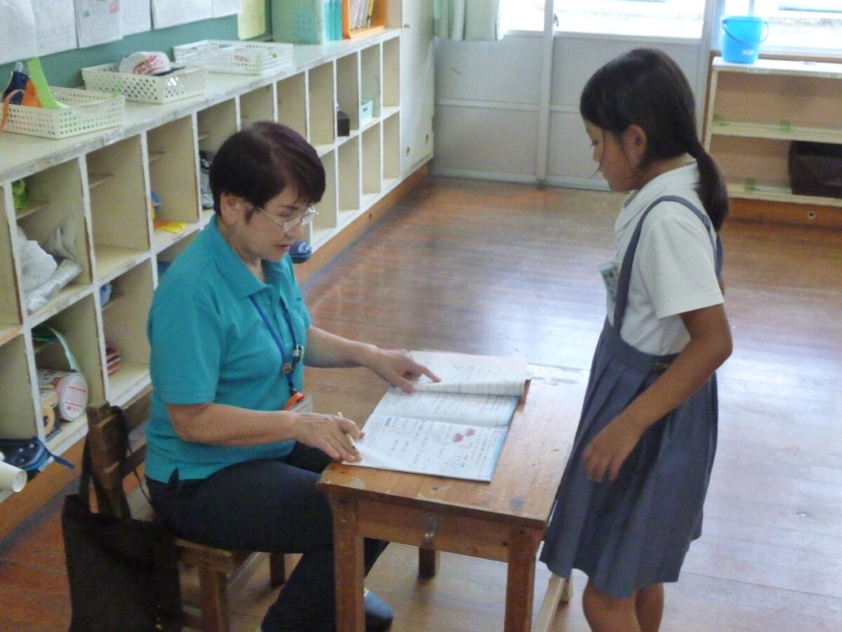 今日は、地域ボランティアの方々による放課後個別指導の日でした。4名の方に来ていただき、5時間目終了後に1~3年生、6時間目終了後に4~6年生の個別指導をしていただきました。