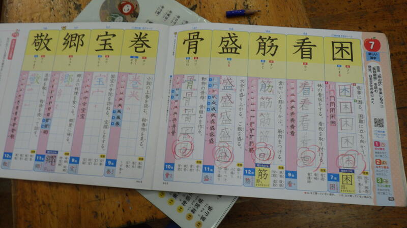 お気付きのことと思いますが、敢えて間違った字を書き、子供たちに正しい漢字をその下に書かせられていました。正しい字をしっかり覚えてほしいと思います。