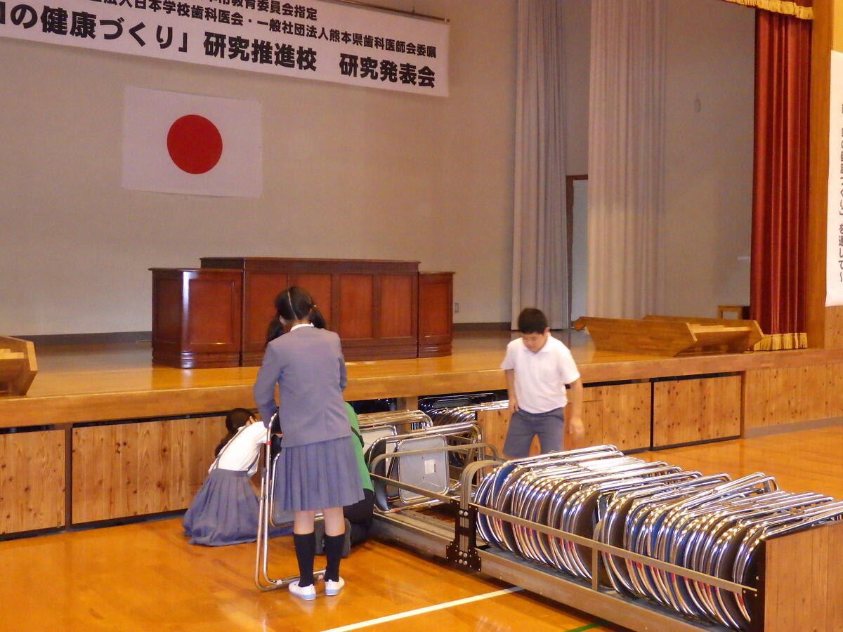今日は、放課後の時間を使って、当日の分科会会場の設営を子供たちが頑張ってくれました。5時間目終了後に1~3年生、6時間目終了後に4~6年生が、積極的にテキパキと準備をしてくれました。ここでは、4~6年生の様子をご紹介します。
